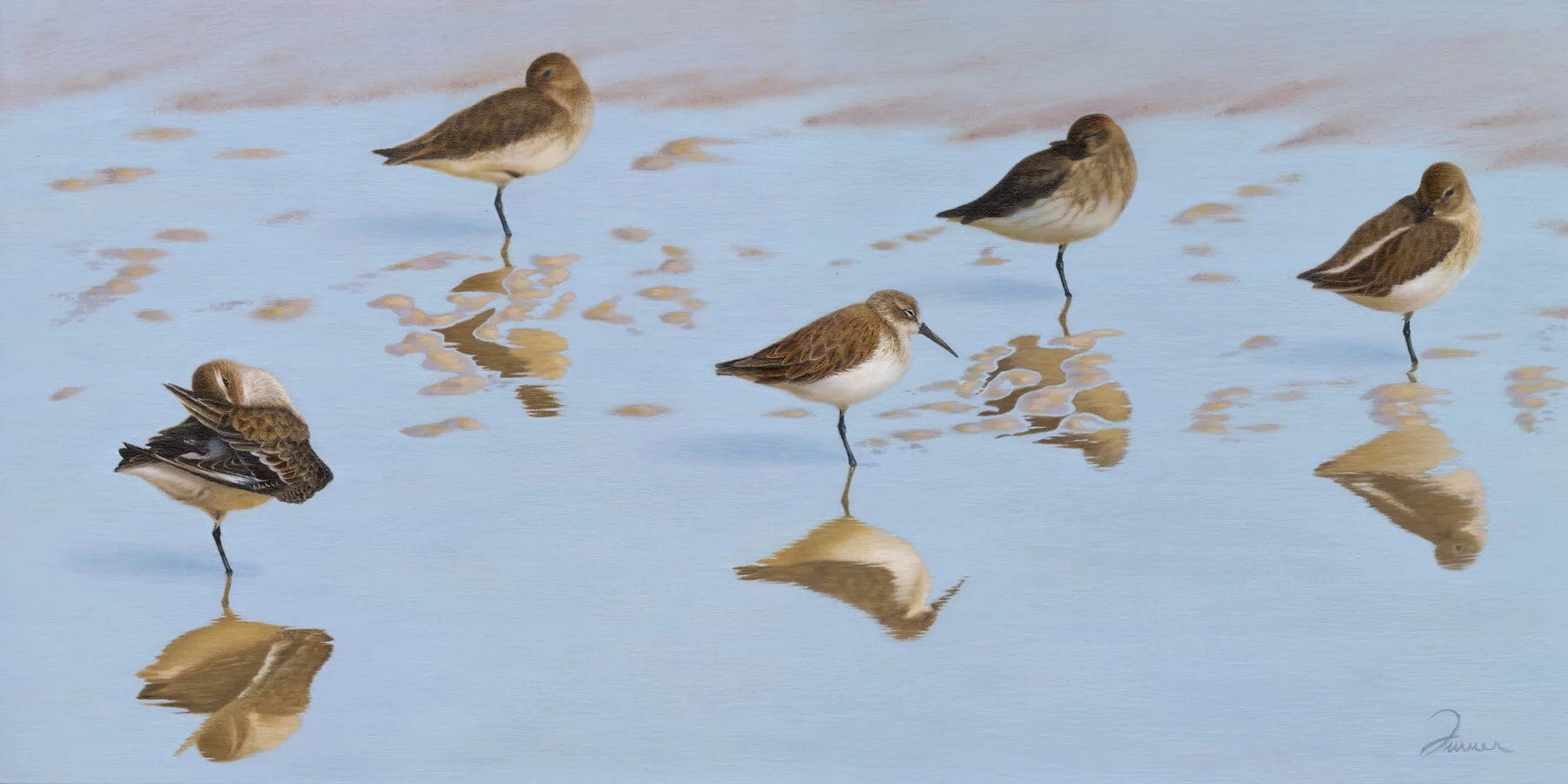 I’m particularly fond of this painting because I feel I was able to pull off what I wanted to say. At first glance it’s a calm, simple and hopefully peaceful picture of birds resting in a pool of water that had been sculpted out of the sand by the changing tides. But looking further one can see that there was a lot of work and detail that went into the painting.
